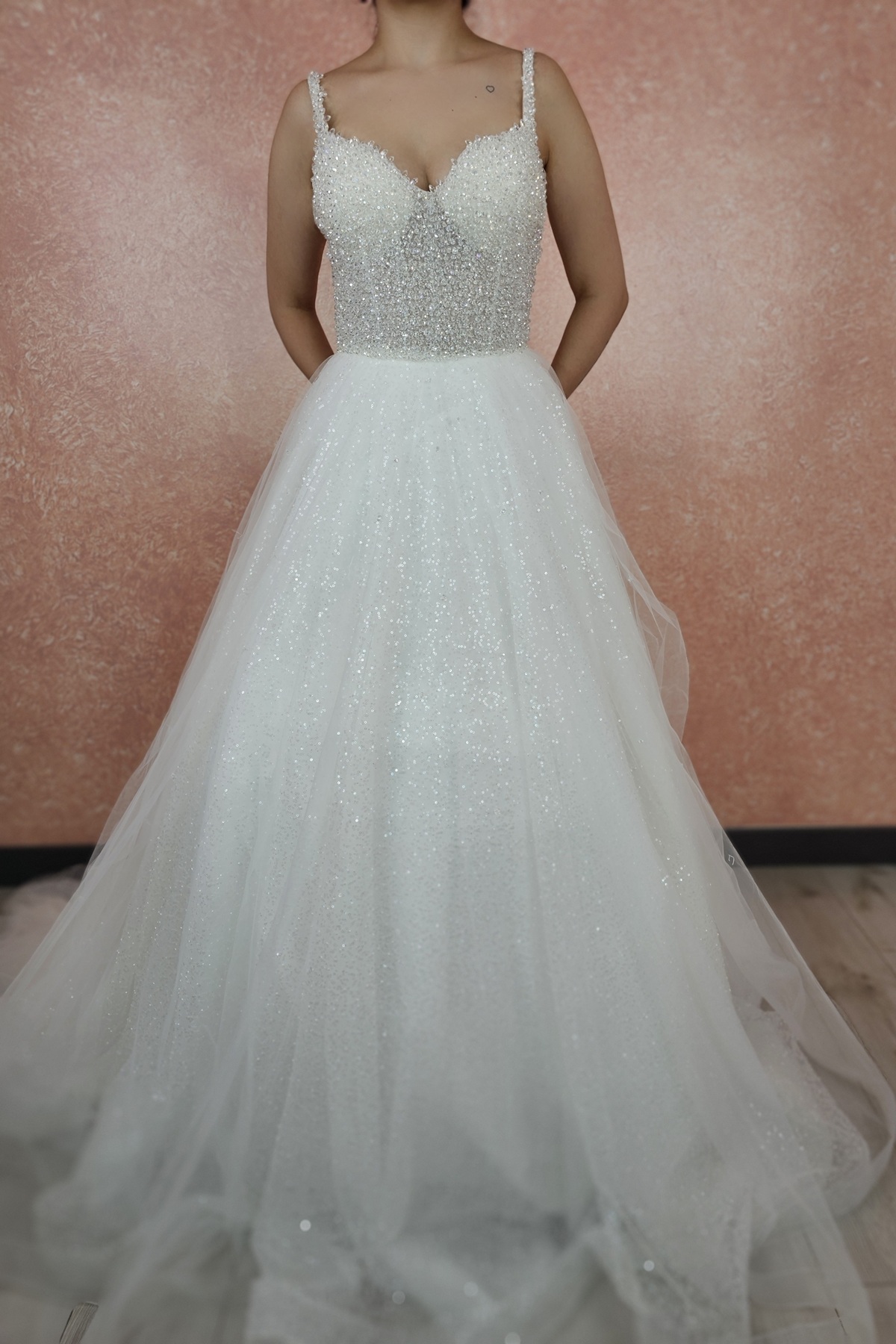 Bu gelinlik, sofistike ve ihtişamla dolu bir düğün günü arzulayan gelinler için idealdir. İster büyük bir balo salonu, ister lüks bir düğünü veya şık bir şehir kutlaması hayal ediyor olun, bu gelinlik seçtiğiniz ortamı zahmetsizce tamamlayacak ve gösterişli tasarımıyla kalıcı bir izlenim bırakacaktır.